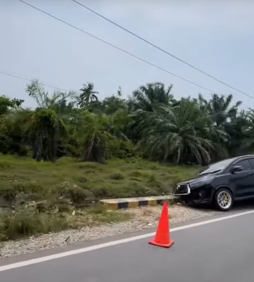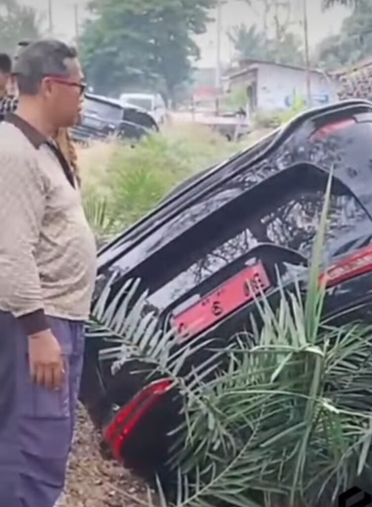 Akibat kecelakaan tersebut, mobil Fortuner yang ditumpangi Wakil Ketua DPRD Bengkalis Hendri Firnanda terbalik dan masuk ke dalam parit di pinggir jalan.